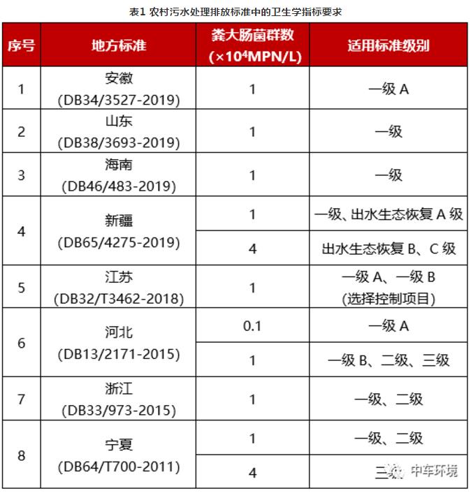 1 農(nóng)村污水處理排放標準中的衛(wèi)生學(xué)指標要求